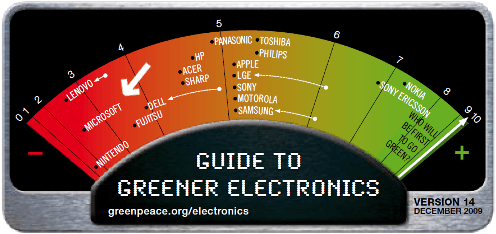 Greenpeace regularly publishes a guide to green electronics, in which Microsoft scores disastrously: