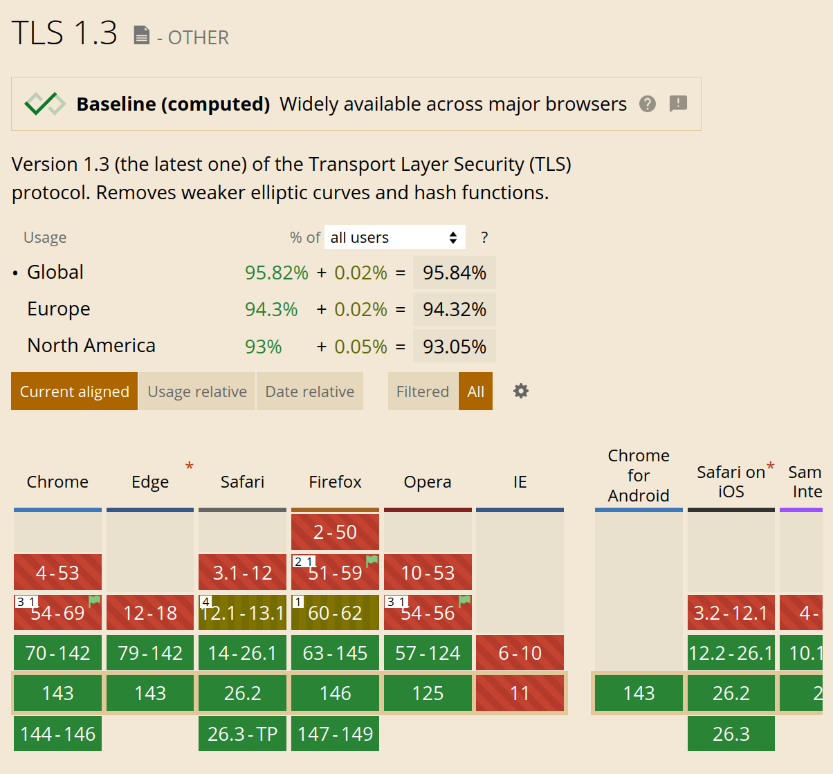 Yes, you should definitely enable TLS v1.3 – even if you keep TLS 1.0 / 1.1. TLS 1.3 is faster than version 1.2, and it is already supported by most mainstream browsers (screenshot taken on January 10, 2026):